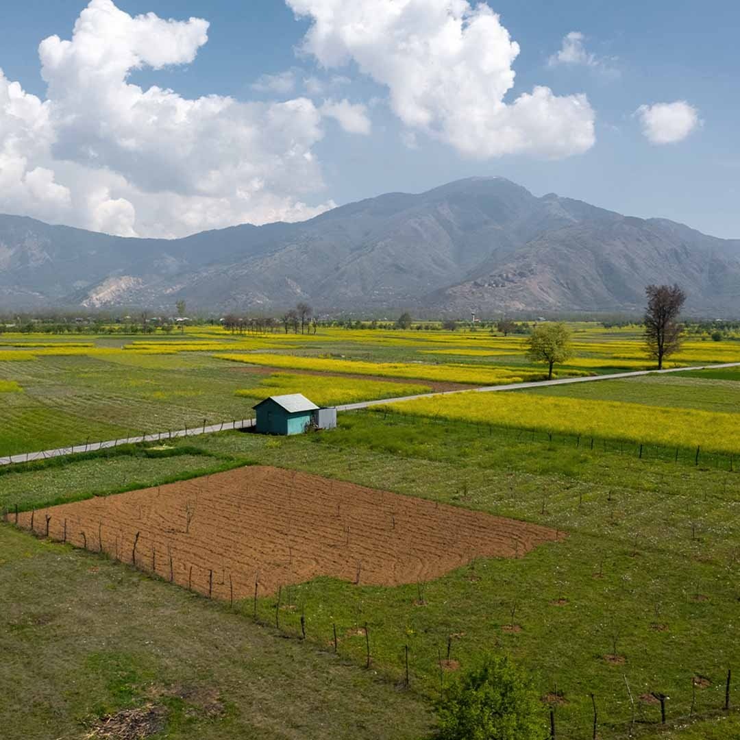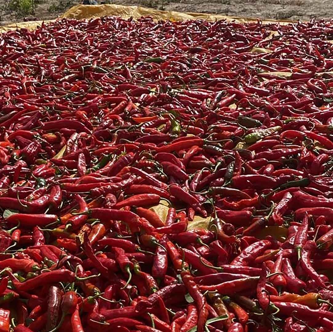 Im üppigen Tal von Kaschmir, im Herzen Nordindiens, umgeben von den Grenzen zu Pakistan, China und Afghanistan, baut Showkat mit Leidenschaft die Kashmiri-Chili an. Der Osten Kaschmirs, geprägt von Ladakh, das wegen seiner beeindruckenden Höhe von 5.300 Metern oft als "Klein-Tibet" bezeichnet wird, ist ein Land für Abenteuer und Trekking, das Erbe eines alten buddhistischen Königreichs mit mondbeschienenen Berglandschaften und Gletschern, aus denen sich im Süden die Gipfel des Himalayas erheben. Die Stadt Srinagar, die Sommerhauptstadt dieser Region, liegt auf 1.583 m Höhe und ist berühmt für ihre kühle Atmosphäre und romantische House-Boat-Fahrten auf dem Dal-See. Nicht weit entfernt, etwa 15 km südlich der Stadt, in den Weiten von Pampore, lässt Showkat seine Chilipflanzen gedeihen. Im Herbst verwandeln sich die Felder und bieten mit ihren leuchtenden Rottönen ein beeindruckendes visuelles Spektakel, das die kargen Landschaften in wahre Naturmosaike verwandelt.