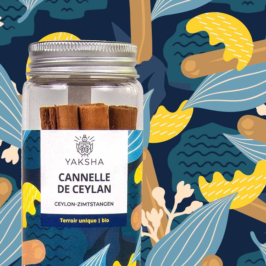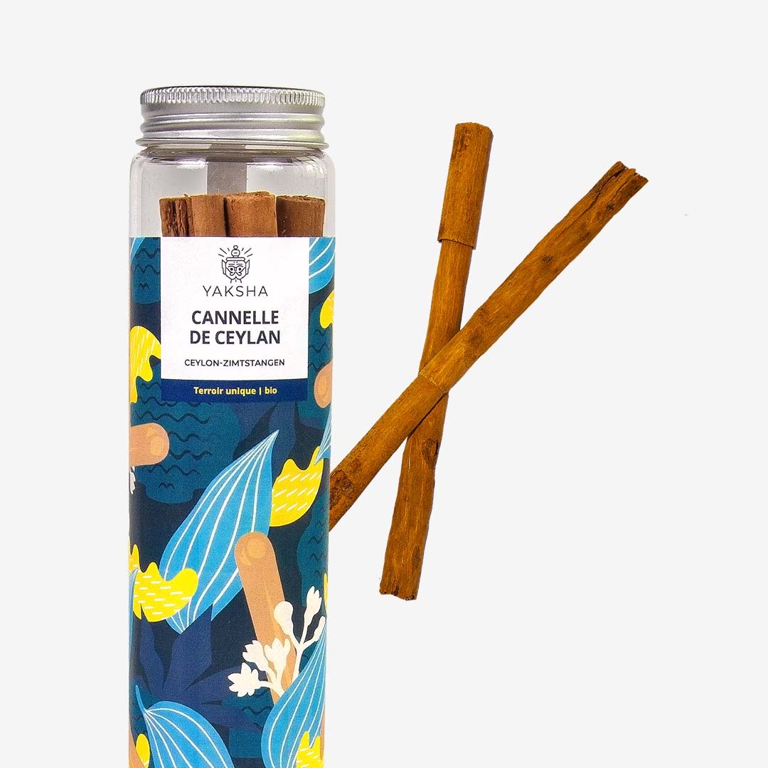 Originaire de Ceylan, la cannelle du Sri Lanka n’a plus à faire sa réputation, étant considérée comme la meilleure au monde. Extraite des canneliers de Ceylan, arbustes poussant à l’état sauvage dans la jungle tropicale de la côte ouest, la cannelle a toujours été prisée. Dans l’Antiquité, les Egyptiens l’utilisaient pour faire de l’encens et embaumer les morts. Au VIIIe siècle, les négociants arabes dominaient le commerce jusqu’à ce que les Portugais découvrirent la cannelle sri lankaise au XVIe siècle. A cette époque, l’épice était déjà très appréciée pour ses saveurs subtiles, aux notes sucrées. Les bâtons de cannelle Yaksha sont délicatement préparés à la main, après l’extraction de l’écorce interne du cannelier. Plusieurs fines couches d’écorce sont enroulées les unes sur les autres jusqu’à ce qu’une sorte de cigare soit formé. Seules les jeunes pousses sont récoltées pour leur écorce qui provient de la lauracée tropicale, au feuillage persistant et de la même famille que les avocatiers ou les camphriers.