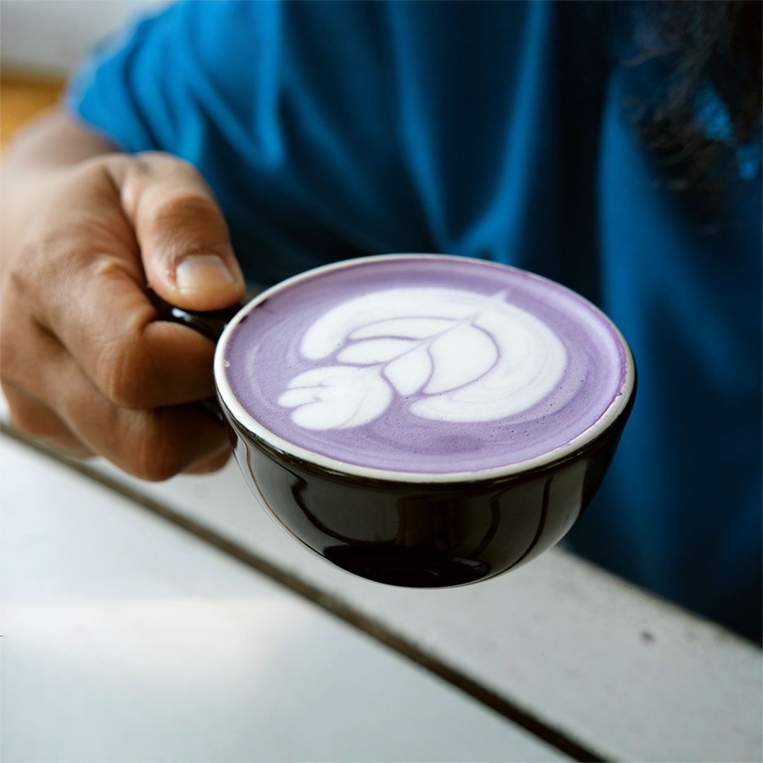 - L’ube est une poudre 100 % naturelle : un léger dépôt peut apparaître au fond de la tasse.