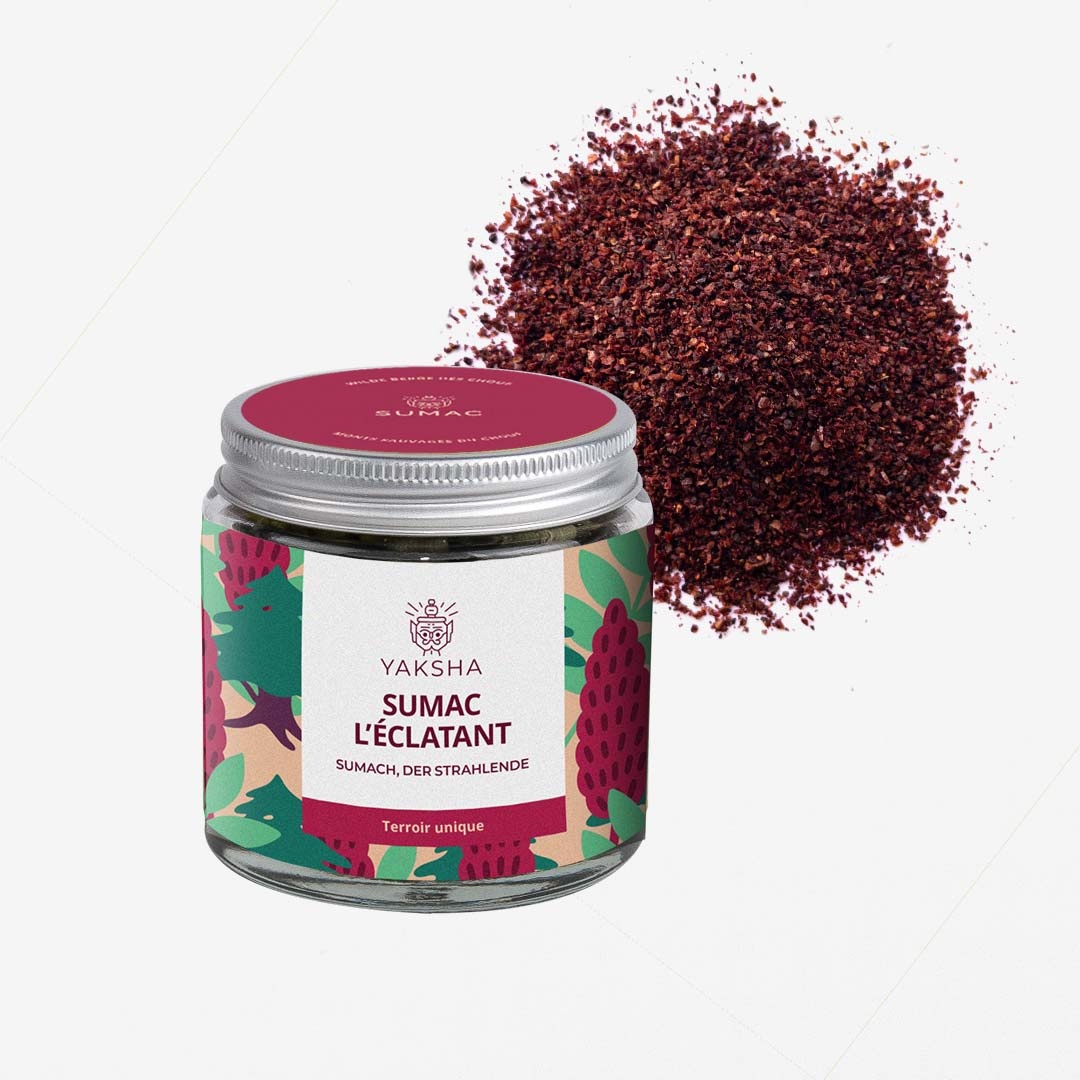 Au cœur des montagnes du Chouf, le sumac Yaksha pousse à l’état sauvage sur des coteaux baignés de lumière, entre vallées calcaires et forêts de cèdres majestueux. Ce paysage emblématique du Mont-Liban, façonné par des étés arides et des vents secs venus de la Méditerranée, offre aux baies de Rhus coriaria un terroir d’une rare pureté : chaleur sèche, sols pierreux, air vif et altitude généreuse. Là, chaque buisson s’accroche à la roche comme pour puiser dans la terre brute l’intensité d’un soleil sans filtre. Récoltées à la main au pic de leur maturité, les grappes de baies sont ensuite séchées lentement sous le ciel éclatant du Chouf. Broyées avec soin, elles dévoilent une poudre d’un rouge profond, à la texture souple, au goût acidulé, citronné, subtilement fumé. Le sumac Yaksha sublime aussi bien une salade fattoush qu’une viande grillée, des légumes rôtis ou un houmous onctueux. À la fois condiment et éclat visuel, il colore les assiettes tout en réveillant les saveurs par une fraîcheur vive et équilibrée. Éclatant, le sumac Yaksha? Il apporte cette touche acidulée qui équilibre et réveille chaque bouchée.