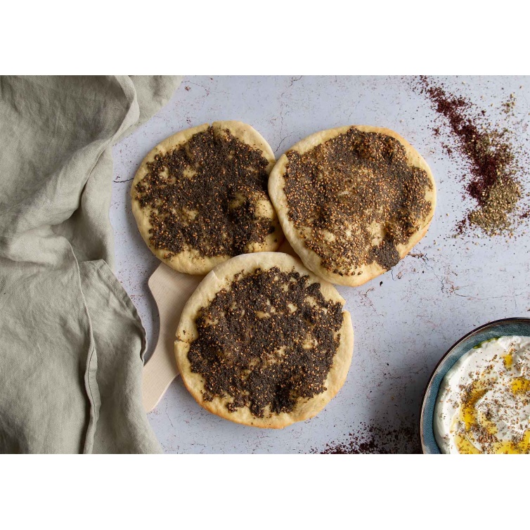 La fattouche est une salade libanaise colorée, croquante et acidulée, emblématique de la cuisine du Levant. On la prépare ici avec des tomates épépinées, du concombre, des radis, de la laitue romaine, des oignons nouveaux, du persil plat et de la menthe fraîche. Une sauce lactée au yaourt nature et babeurre, relevée de citron, d’ail et de menthe séchée, enrobe le tout. Le pain pita est grillé pour plus de texture, et le sumac, saupoudré juste avant le service, vient parfaire l’équilibre. Une entrée végétarienne, saine et pleine de goût.